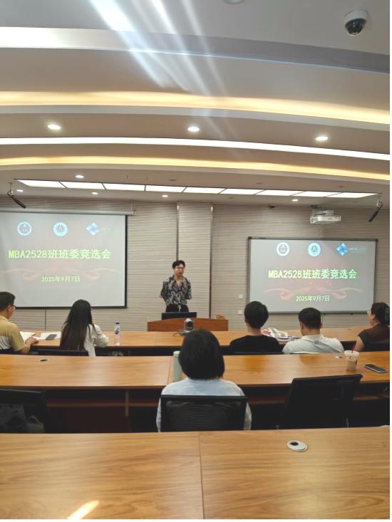 清爽金风碧树间,点滴昀染著秋颜。为进一步增强同学们的集体归属感,营造良好的班级氛围,高效开展各种班级活动,2025年9月7日,MBA教育中心在实验楼3231阶梯教室,组织开展了MBA2528班班委竞选。活动由MBA教育中心韩童老师主持。