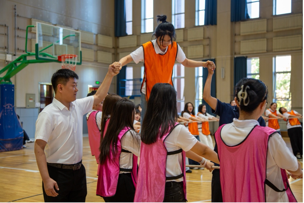 “生命动力圈”将整个活动推向高潮。所有成员手拉绳索围成同心圆,为共同目标全力“划动”。尽管手臂酸麻、汗水湿透衣衫,但无人轻言放弃。在整齐划一的口号声中,团队携手挑战了原本看似不可能完成的旋转次数,生动诠释了‘团结就是力量’的深刻内涵。