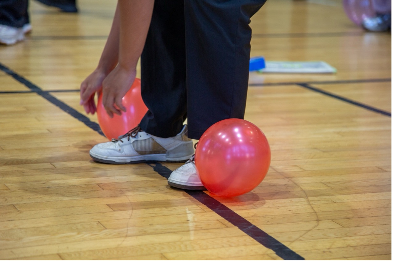 在“超级大锤”活动中,各队学员分工明确,有序排队,迅捷奔跑,用力挥动大锤,精准砸向目标,相互竞速比拼,奋勇争先。