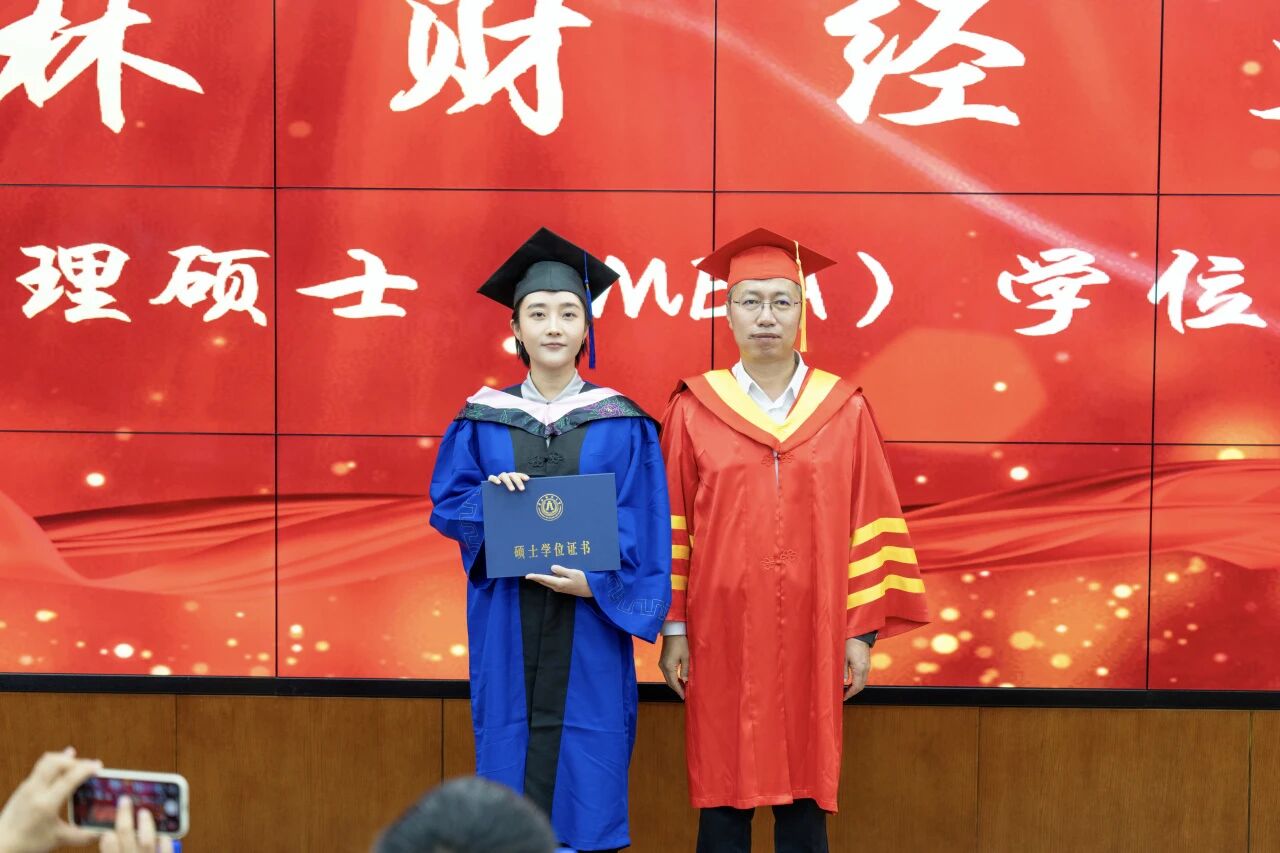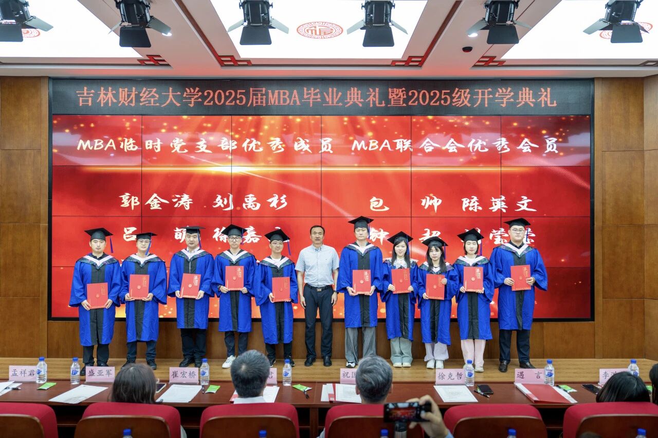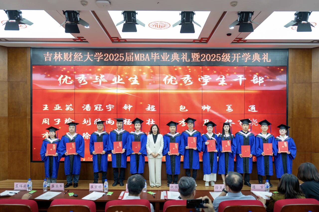 卢相君宣读了《吉林财经大学关于颁发2025届工商管理专业硕士研究生毕业证书的决定》《吉林财经大学关于授予2025届工商管理专业研究生硕士学位的决定》,授予李蕊等65名同学工商管理专业硕士学位。