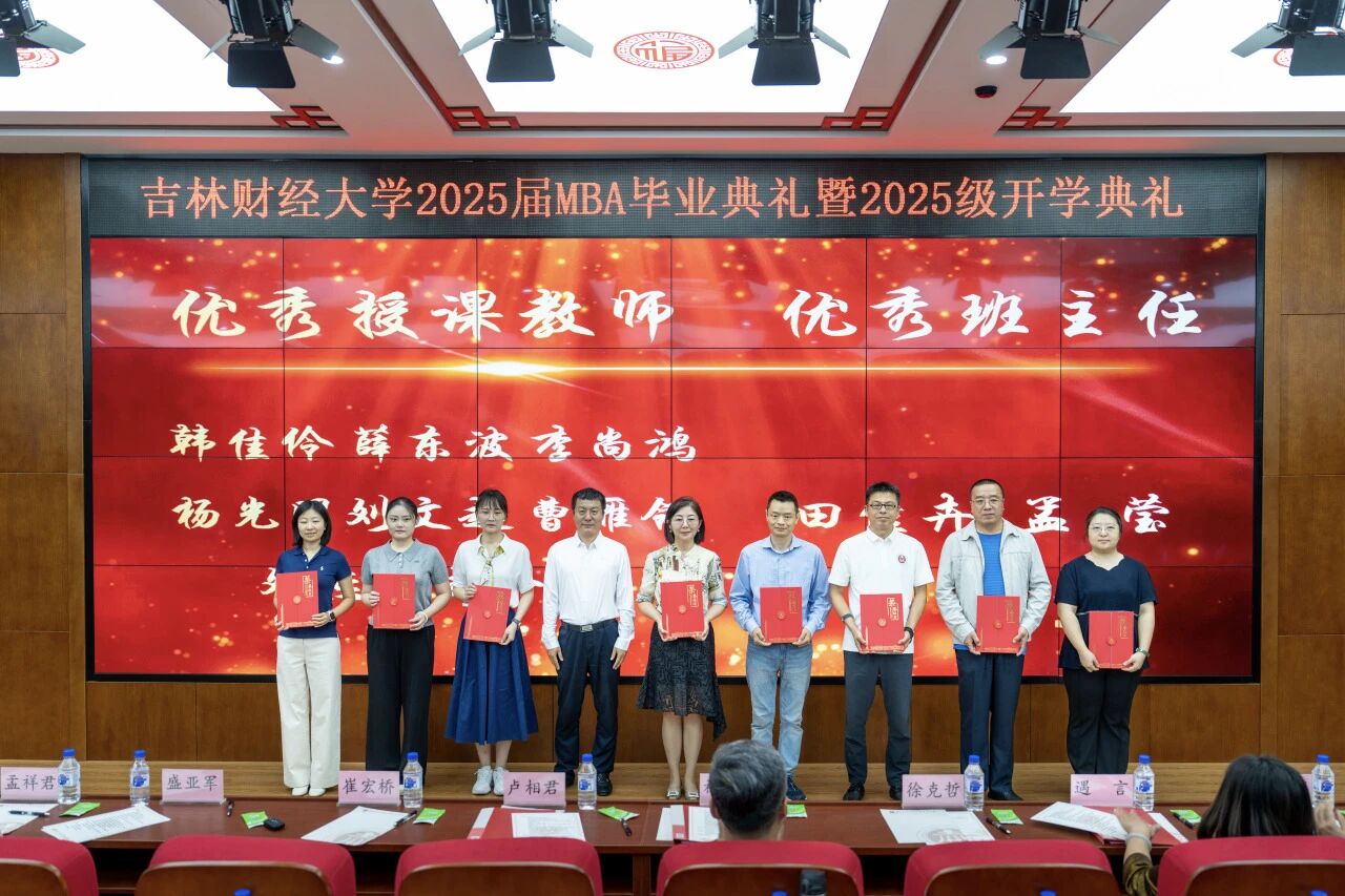 随后,遇言宣读了《关于吉林财经大学2025届MBA优秀教师及学生的表彰决定》,祝国平、卢相君、徐克哲、崔宏桥依次为获奖师生颁发了荣誉证书。