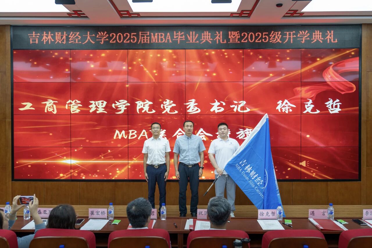 紧接着,崔宏桥宣读了《吉林财经大学第十八届MBA联合会主席团成员名单》,徐克哲为第十八届MBA联合会授旗。